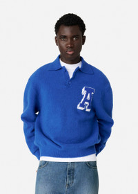 Knitted from a soft cotton-blend, the Team polo sweater has a classic collar and ribbed trims. Our Varsity A intarsia finishes this piece. The model is 188cm / 6'2 ft wears a size M.