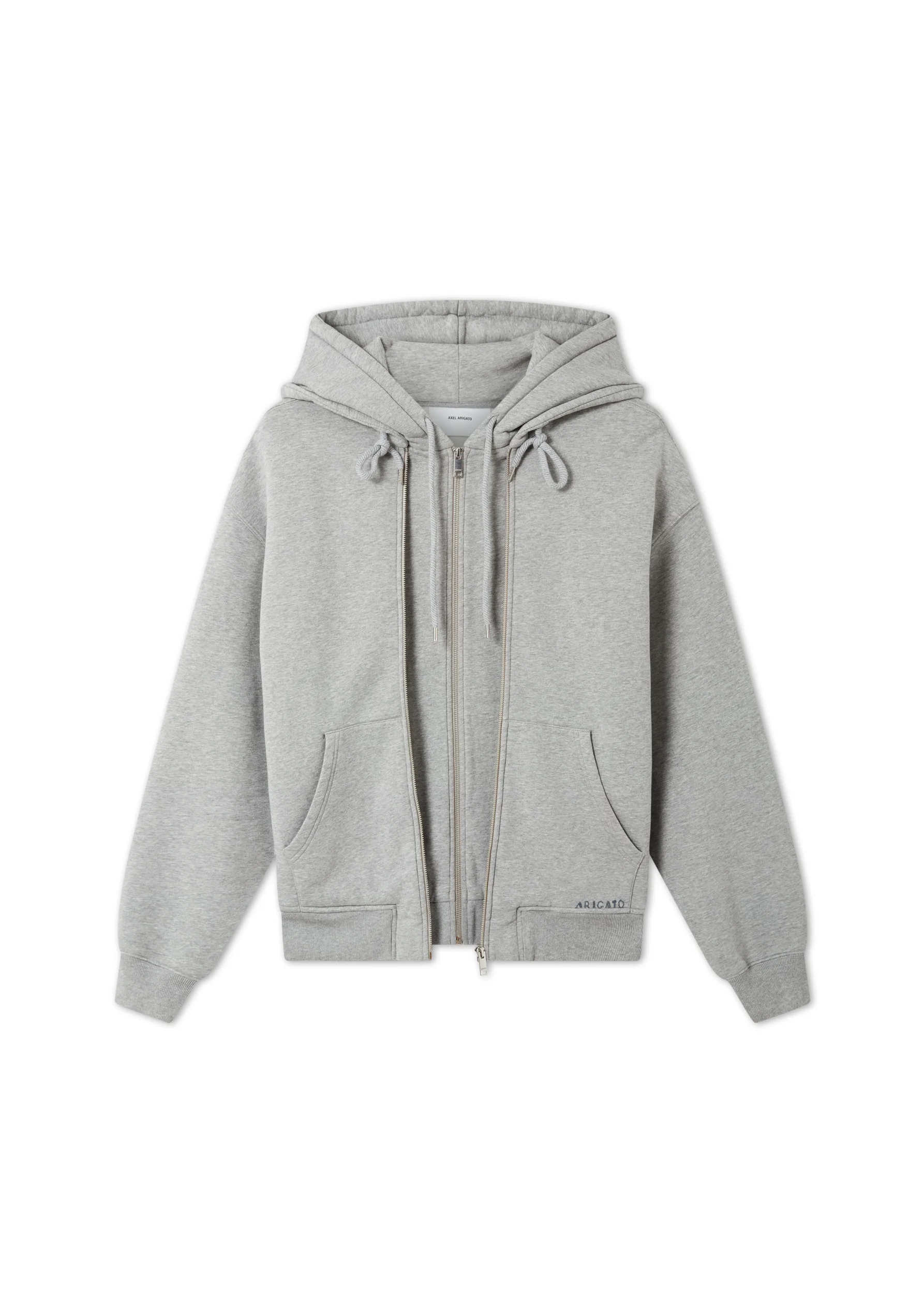 Crafted from organic cotton, the oversized Trey Melange hoodie features a doubled hood and zip, as well as two sets of drawcords. Hand-stitched ‘Arigato’ embroidery and brushed hardware finish this piece. This product is made from a delicate fabric with a unique finish. Please handle it with care. The model is 188 cm / 6’2 ft and wears a size M. Style Details - 100% Organic Cotton - Oversized fit - Double hood construction - 2 sets of drawcords for adjustable hood - Double zip detail at centre front - 'Arigato' hand stitch embroidery on pouch pocket - Silber brushed metal trims - Crafted in Portugal - Care instructions:30 degrees gentle cycle, wash with similar colours