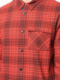 check-print long-sleeved shirt orange cotton check print chest patch pocket front button placket classic collar long sleeves buttoned cuffs curved hem Imported Composition Body: Cotton 100% SIZE & FIT Model measurements Height 6 ft 2 in(1.88 m) Bust/Chest 38.18 in(97 cm) Hips 37 in(94 cm) Waist 29.92 in(76 cm) FittingInformation This piece fits true to size. We recommend you get your regular size Cut for a relaxed fit Made with a mid-weight fabric Washing instructions Hand Wash