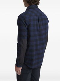 checked shirt Highlights - Navy blue - Cotton blend - Check pattern - Front button fastening - Classic collar - Chest flap pocket - Elbow patches - Long sleeves - Buttoned-cuff sleeves - Rear curved hem Imported Composition Cotton 96%, Polyester 4%