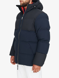 Durant feather down jacket navy blue down-feather filling drawstring hood front zip fastening front zip fastening pockets long sleeves straight hem Imported Composition Lining: Feather Down 100% Outer: Nylon 100%