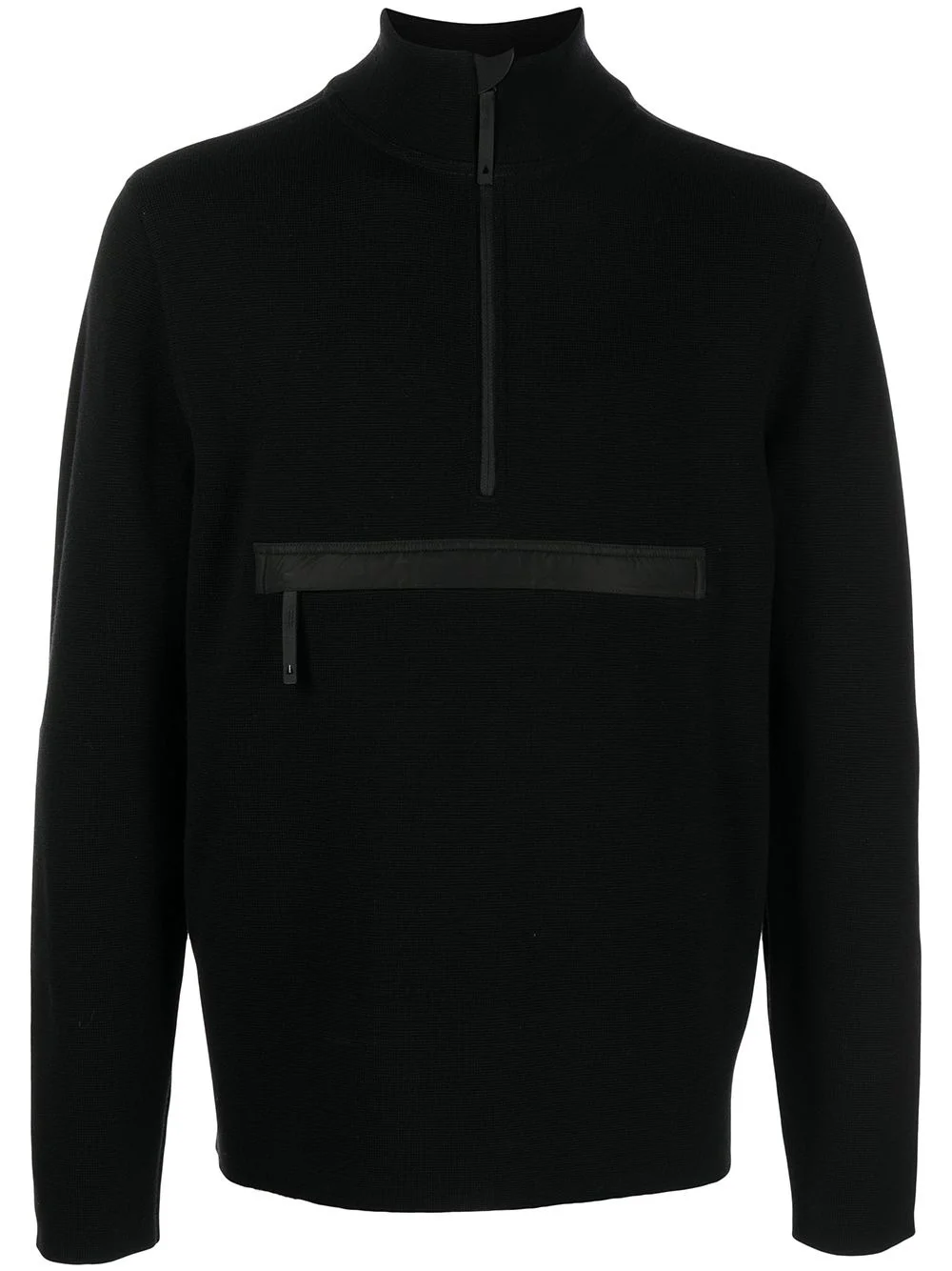 half-zip roll neck sweater space black virgin wool front zip-fastening compartment half front zip fastening roll neck long sleeves straight hem Imported Composition Body: Virgin Wool 100% SIZE & FIT Model measurements Height 6 ft 2 in(1.88 m) Bust/Chest 38.18 in(97 cm) Hips 37 in(94 cm) Waist 29.92 in(76 cm) Washing instructions Dry Clean Only