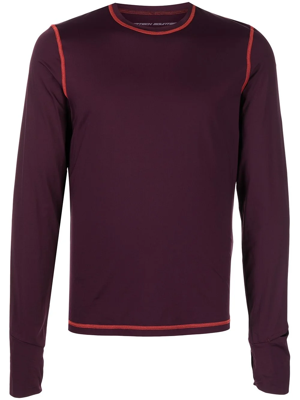 Next To Skin sweatshirt purple contrast stitching crew neck long sleeves stretch-design Imported Composition Body: Polyester 88%, Elastane 12% SIZE & FIT Model measurements Height 6 ft 2 in(1.88 m) Bust/Chest 38.18 in(97 cm) Hips 37 in(94 cm) Waist 29.92 in(76 cm) FittingInformation This piece fits true to size. We recommend you get your regular size Cut for a slim fit Made with a mid-weight fabric Washing instructions Dry Clean Only