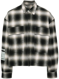 logo-patch plaid shirt Highlights - Black/white/forest green - Wool blend - Plaid check pattern - Classic collar - Long sleeves with buttoned cuffs - Logo patch at the sleeve - Two front patch pockets - Rear tape detailing - Logo patch to the rear - Unlined - Straight hem - Front button placket Made in United States Composition Wool 55%, Polyester 25%, Alpaca 10%, Acrylic 5%, Nylon 5% SIZE & FIT Model measurements Height 6 ft 2 in(1.88 m) Bust/Chest 36.61 in(93 cm) Hips 35.82 in(91 cm) Waist 27.95 in(71 cm) FittingInformation Designed for a boxy fit, intended for a loose fit throughout Made from a midweight non-stretch fabric This piece fits true to size – take your usual size Washing instructions Dry Clean Only