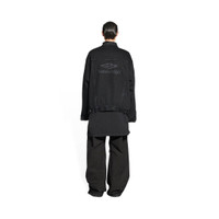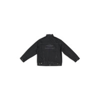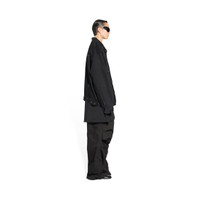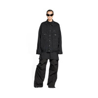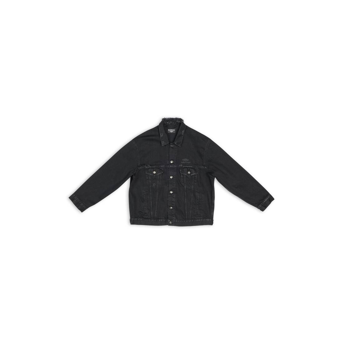 3B Sports Icon Large Fit Jacket in black Japanese denim PRODUCT DETAILS • Japanese denim • Unifit • Large fit • 6 buttons front • 2 buttoned pockets at chest • 2 slash pockets • Buttoned at cuffs • Adjustable buttoning at waist • Balenciaga engraved flex buttons • 3B Sports Icon artwork at chest and back • Destroyed finishings at collar • Made in Italy • Dry cleaning • The model is wearing a size S Material: 100% cotton