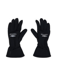 Pair of insulated polyester ripstop and buffed lambskin gloves in black. · Logo printed at top · Elasticized wrists · Velcro tab at cuffs · Lanyard-clasp fastening at side · Fleece lining Part of the Skiwear collection. Supplier color: Black