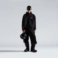 3B Sports Icon Zip-Up Hoodie in washed black and white technical jersey PRODUCT DETAILS • Technical jersey • Lined for extra warmth • Hood with drawstring • Zipped front • Dropped shoulders • 2 pockets at front • Gathered at cuffs and waistline • 3B Sports Icon artwork embroidered on chest and sleeves • Made in Portugal Main material: 100% cotton