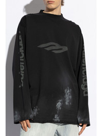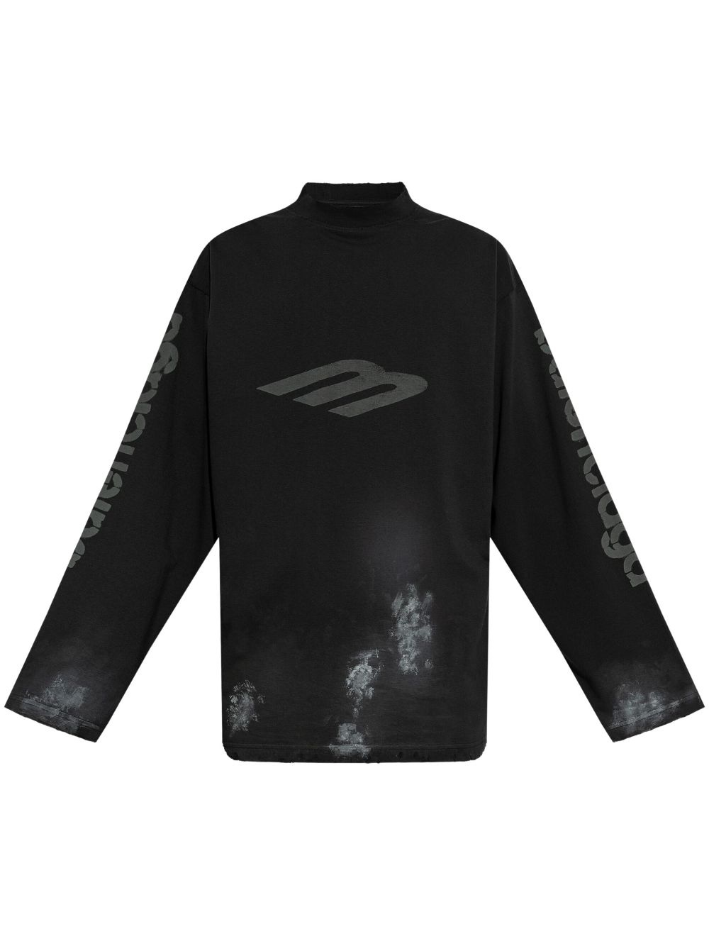 distressed logo-print jumper Highlights - Black/grey - Cotton - Logo print at the sleeve - Logo print at the chest - Distressed effect - Mock neck - Long sleeves - Straight hem Imported Composition Cotton 100%