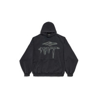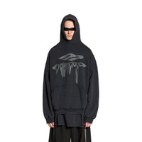 3B Liquified Hoodie Large Fit in washed black and grey archetype fleece PRODUCT DETAILS • Archetype fleece • Hood without drawstring • Dropped shoulders • 1 kangaroo pocket on front • Gathered at cuffs and waistline • 3B liquified artwork at front • Made in Portugal Main material: 100% cotton