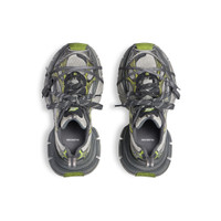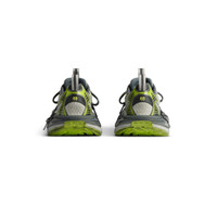 3XL Sneaker in white, grey, green and yellow mesh, polyurethane and polyester PRODUCT DETAILS • Leather free • Sneaker • Mesh, polyurethane and polyester • Worn-out effect • Balenciaga logo at the edge of the toe and at back • Embossed size on the upper and at the back of the heel • 3XL rubber branding on the tongue with reflective detail • Back and tongue pull-on tab with reflective detail • Caution: extra laces are tied around the shoes for styling purpose and should be removed before use • Made in China Upper: polyurethane, polyester - Sole: rubber, EVA - Insole: foam