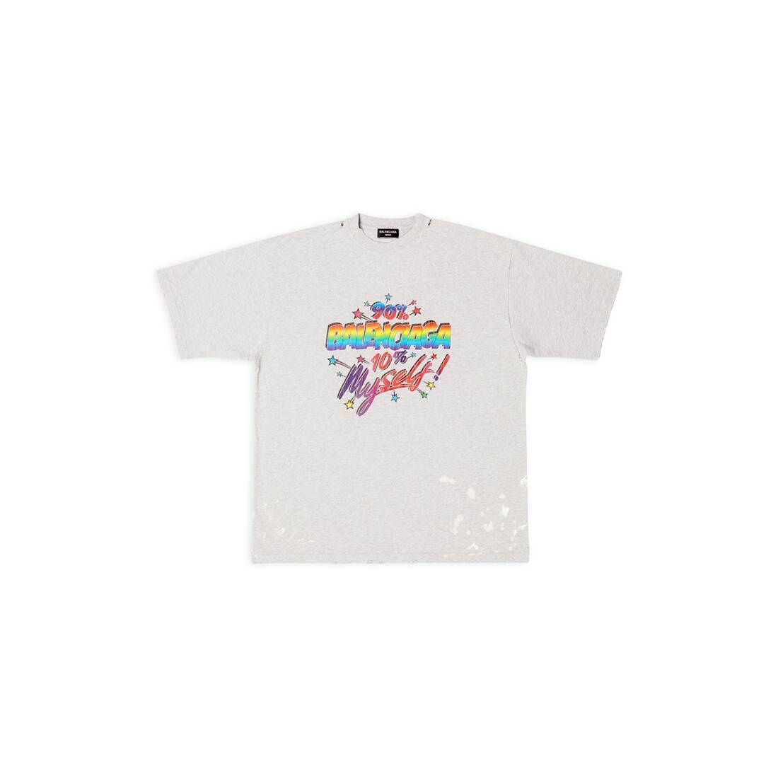 90/10 T-Shirt Large Fit in grey vintage jersey PRODUCT DETAILS • Vintage jersey • This item is unisex • Large fit • Crewneck • Short sleeves • 90/10 artwork printed at front • Paint spots on the bottom at front and back • Worn-out effect • Made in Portugal • Dry cleaning • Model is 189 cm / 6'2'' and is wearing a size S Material: 100% cotton