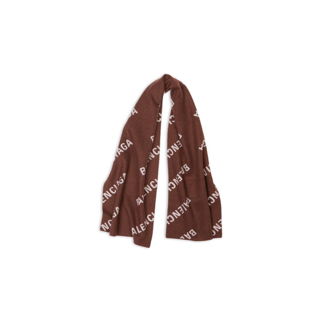 Allover Logo Macro Scarf in brown and white brushed wool PRODUCT DETAILS • Dimensions : L11,8 x H80,7 inch • Brushed wool • Can be doubled around the neck • Jacquard allover Balenciaga logo • Made in Italy • Dry cleaning Material: 100% wool