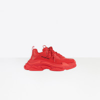 Allover Logo Triple S Sneaker in red and black double foam and mesh PRODUCT DETAILS Composition: 60% Polyurethane, 28% Polyester, 12% Nylon - 100% non leather sneaker - Double foam and mesh sneakers - Allover logo printed - The logos are placed randomly - Embroidered size at the edge of the toe - Embroidered logo on the side - Embossed logo in the back - Triple S rubber branding on the tongue - 2 laces loops including 1 functional - Athletic lacing system featuring 12 fabric eyelets - Bicolor laces - 1 additional pair of laces included - Back pull-on tab and tongue pull-on tab - Made in China - Wipe with a soft cloth - The item comes with a Balenciaga dustbag and box