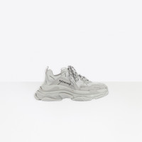 Allover Logo Triple S Sneaker in grey and black double foam and mesh PRODUCT DETAILS Composition: 60% Polyurethane, 28% Polyester, 12% Nylon - 100% non leather sneaker - Double foam and mesh sneakers - Allover logo printed - The logos are placed randomly - Embroidered size at the edge of the toe - Embroidered logo on the side - Embossed logo in the back - Triple S rubber branding on the tongue - 2 laces loops including 1 functional - Athletic lacing system featuring 12 fabric eyelets - Bicolor laces - 1 additional pair of laces included - Back pull-on tab and tongue pull-on tab - Made in China - Wipe with a soft cloth - The item comes with a Balenciaga dustbag and box
