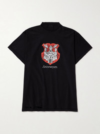 Antwerpen Inside Out Oversized Distressed Printed Cotton-Jersey T-Shirt Black