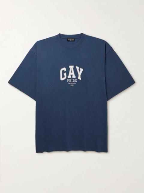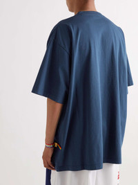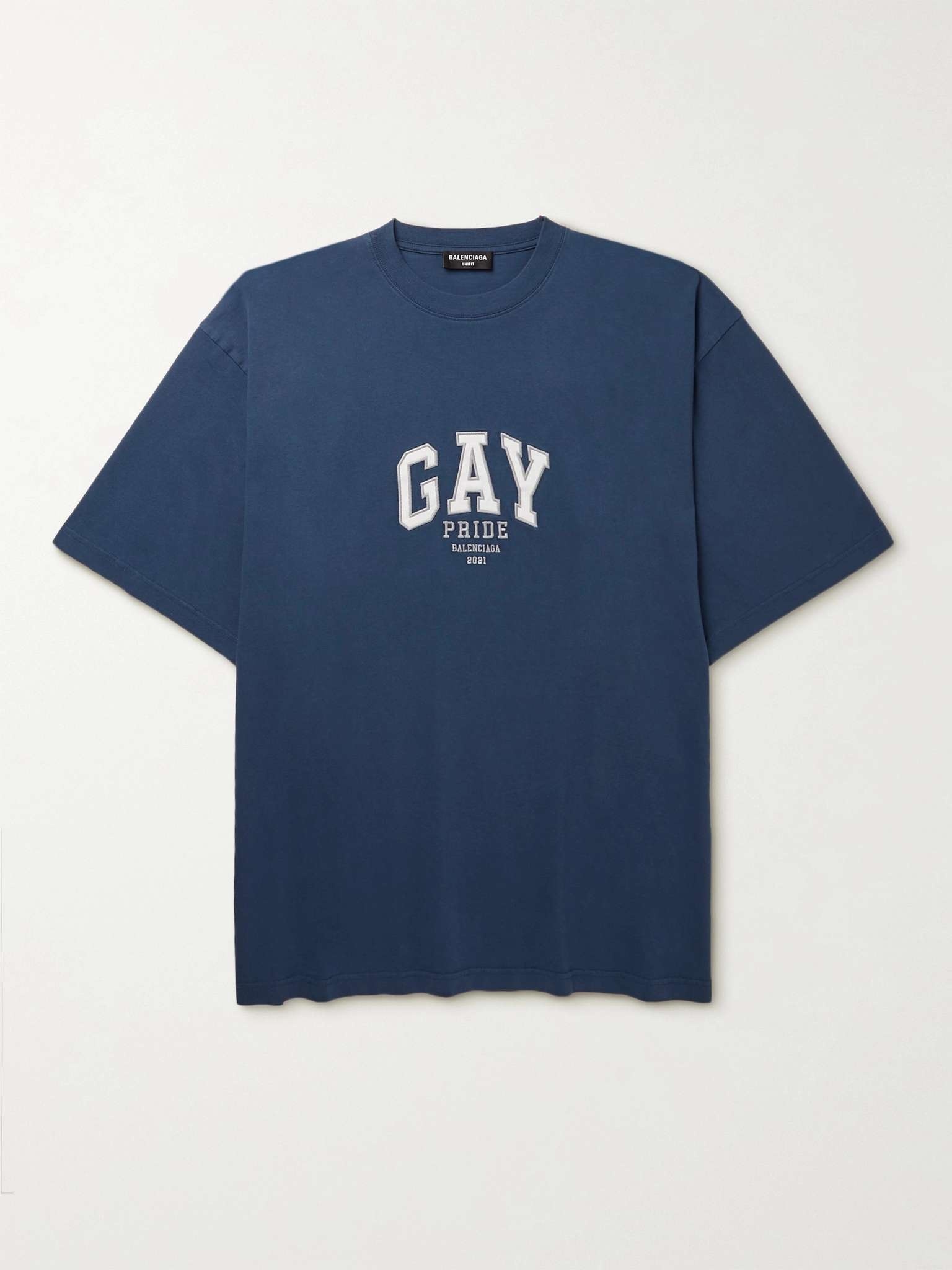 If there's something familiar about Balenciaga's cotton-jersey tee, it's the pseudo clothes shop logo appliquéd at the chest, which Demna Gvasalia is using as political fashion activism. Wear it with pride, and not just in the sartorial sense. Size & Fit - Fits true to size. Take your normal size - The model is wearing a size larger to achieve an oversized fit - This T-shirt is designed for a loose fit - Dropped shoulder seam - Mid-weight, slightly stretchy fabric - Model wears a M - Model measures: chest 36"/ 92cm, height 6'1"/ 185cm Details & Care - Navy cotton-jersey - Crew neck, appliquéd designer emblem - 100% cotton - Machine wash - This item has been imported