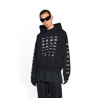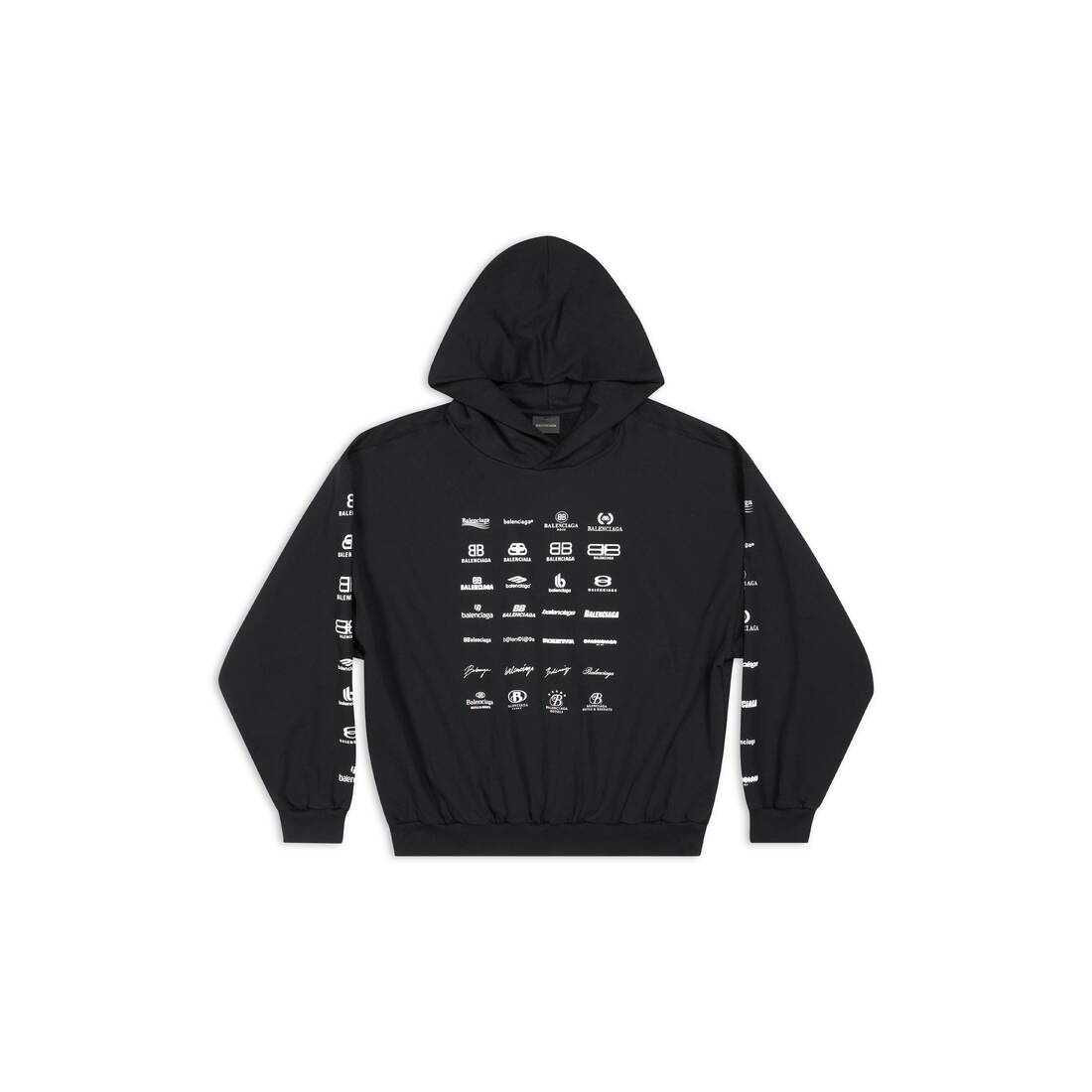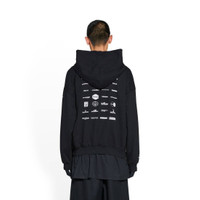 Archives Logos Hoodie Medium Fit in black and white medium fleece PRODUCT DETAILS • Medium fleece • This item is unisex • Medium fit • Hood without drawstring • Gathered at cuffs and waistline • Archives Logos artwork printed at sleeves, front and back • Made in Portugal • Dry cleaning • Model is 185 cm / 6'1'' and is wearing a size S Material: 100% cotton