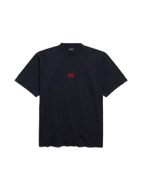 Balenciaga Back Reflective T-Shirt Medium Fit in sage green dry jersey PRODUCT DETAILS • Dry jersey • Crewneck • Short sleeves • Balenciaga Back logo embroidered at front and back • Reflective effect artwork • Made in Portugal Main material: 100% cotton