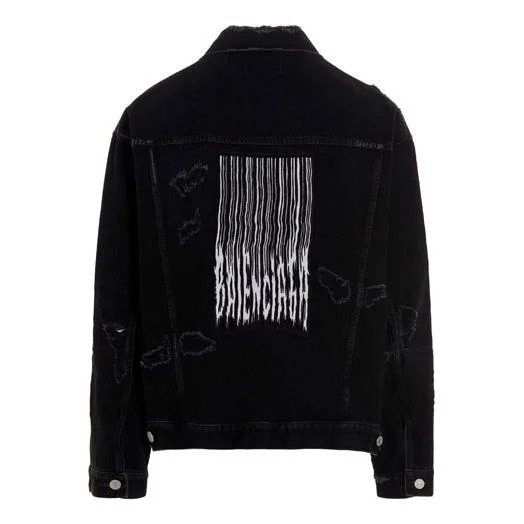 Balenciaga Barcode Destroyed Denim Jacket 'Black' 664329TBP471055
