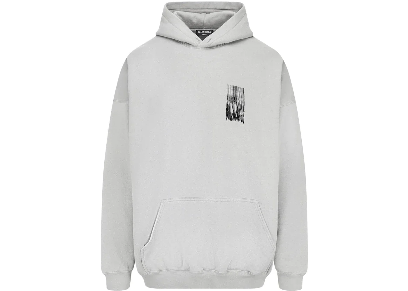 Balenciaga Barcode Logo Fleece Boxy Hoodie Grey