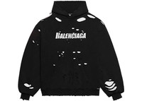Balenciaga Caps Destroyed Hoodie Black/White