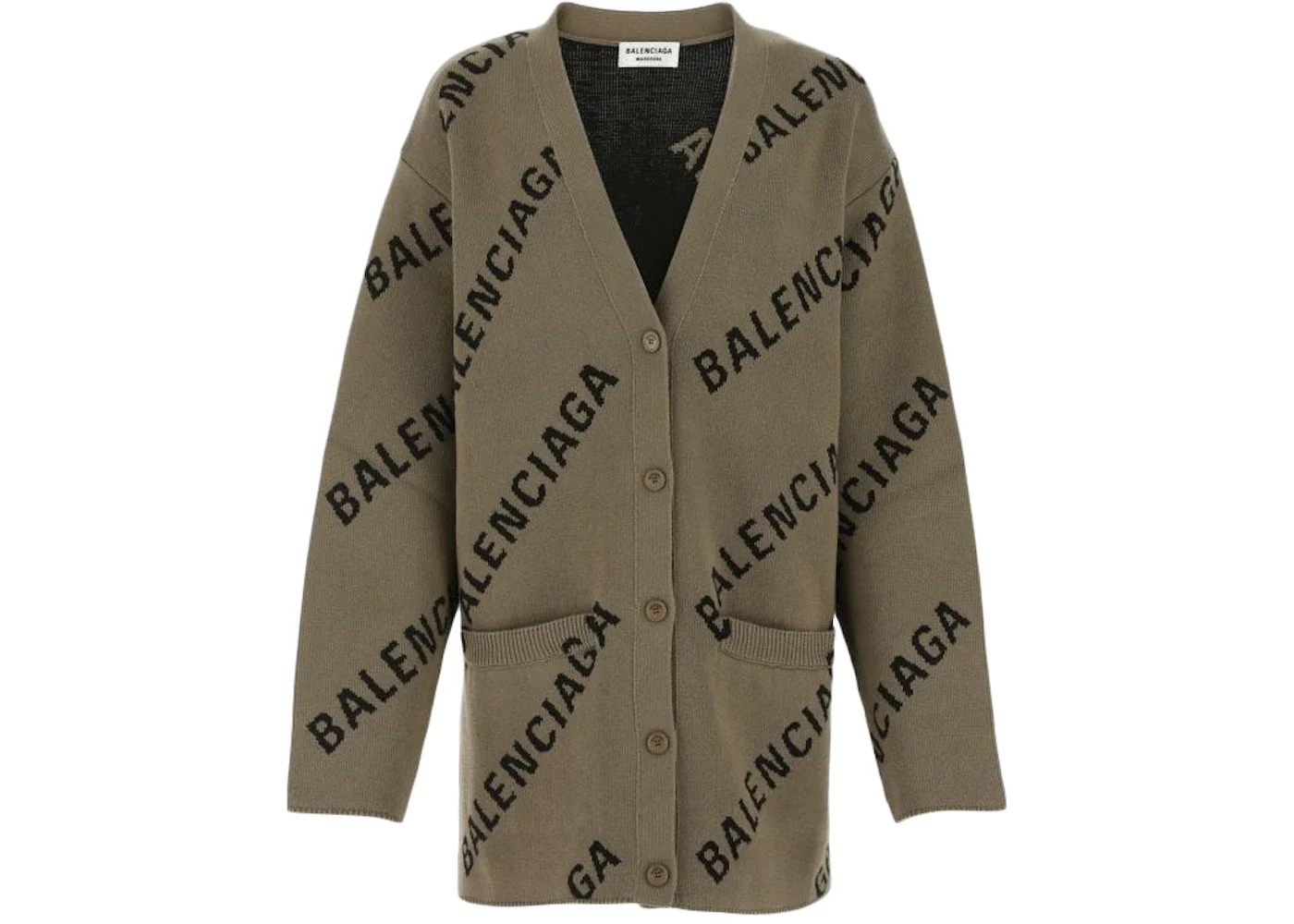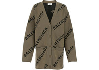 Balenciaga Embroidered Stretch Cotton Blend Oversize Cardigan Brown
