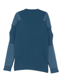 logo-applique ribbed-knit jumper Highlights - Blue - Chest patch pocket - Panel details - Logo embroidery Imported Composition Cotton 100% Washing instructions Read Manufacturer Guidelines