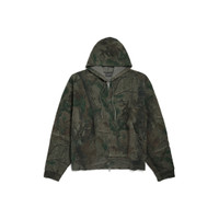 Diamond B Oversized Zip-Up Hoodie in forest green Camo dry fleece PRODUCT DETAILS • Dry fleece • Hood with drawstring • Dropped shoulders • Double-ended zip fastening • 2 front pockets • Elasticated cuffs and waistline • Diamond B artwork embroidered on chest • Made in Portugal Main material: 100% cotton