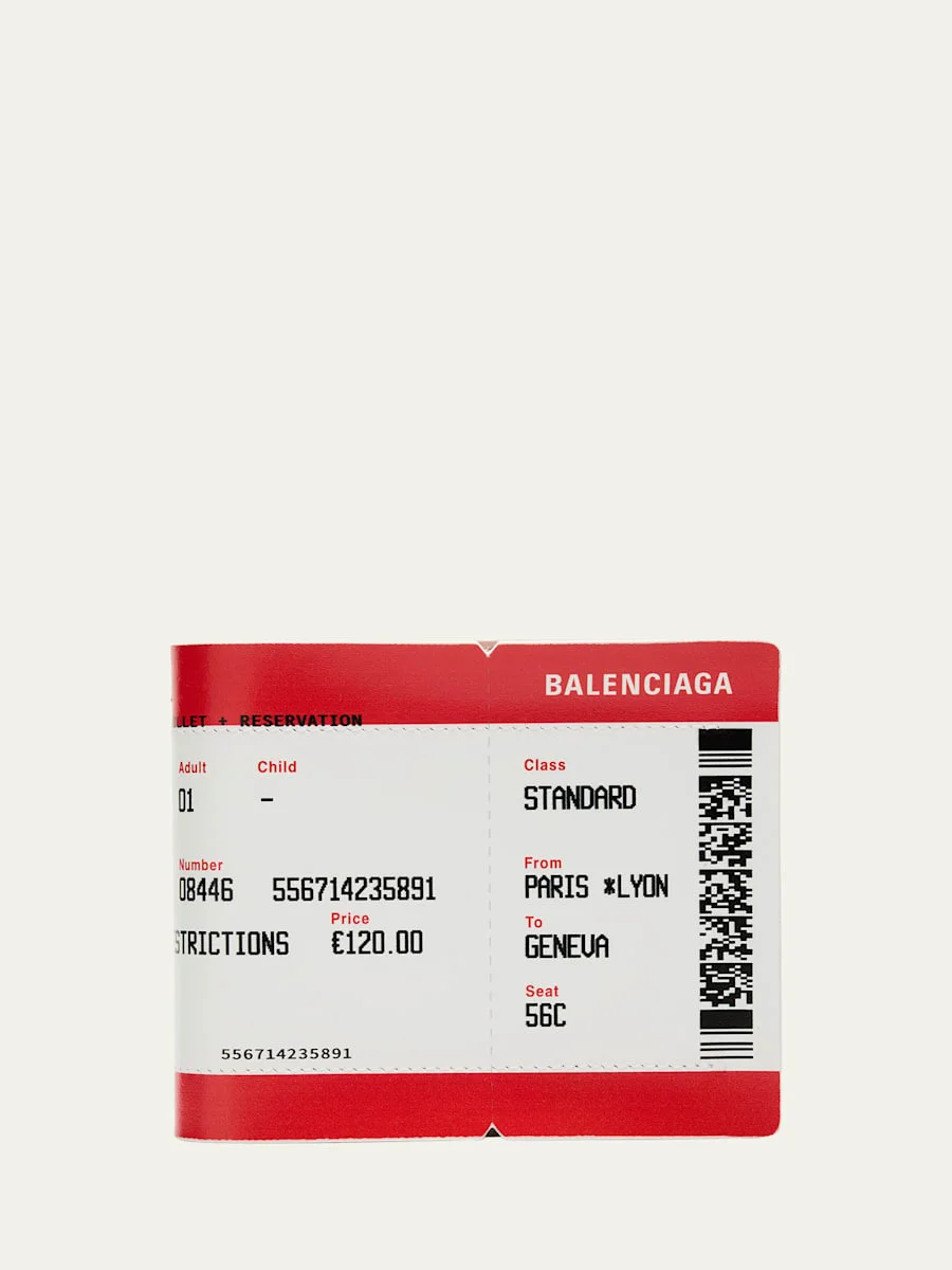 Crafted of shiny box calfskin, the "Passport Boarding Pass" bifold wallet by Balenciaga sports a distinctive boarding pass design with striking attention to detail. Eight card slots Two flat pockets Two bill pockets Approx. 3.74" x 4.5" Spot clean Made in Italy