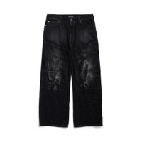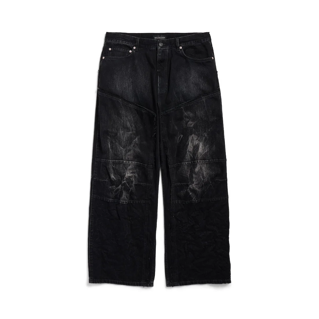 Double Knee Pants in black cotton denim for Men PRODUCT DETAILS • Cotton denim • Paneled construction • Mid-waist • Covered zip fly • 5 belt loops • Drawstring waist • 2 slash pockets at front • 4 patch pockets at back • Balenciaga engraved flex buttons • Made in Italy Main material: 100% cotton