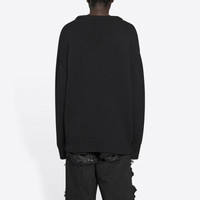 BB Laurel Crewneck in black knit PRODUCT DETAILS • Cotton knit • Large fit • Long sleeves • Dropped shoulder • BB Laurel logo embroidered at front • Made in Italy • Hand wash • Model is 187 cm / 6'2'' and is wearing a FR size S Our approach: We are committed to the sustainable and ethical management of our operations. The goal of reducing our environmental impact influences our decisions. At all levels and in all locales—whether at offices and stores or along the supply chain—we respect high standards for social and ecological responsibility. Balenciaga is also fur- and exotic leather-free. Material: 100% cotton