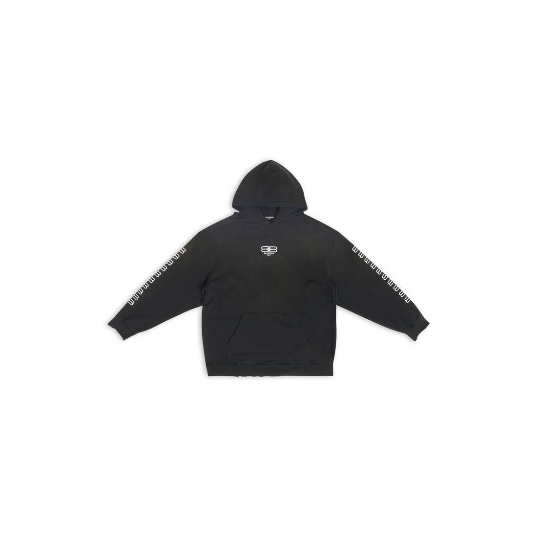 BB Paris Icon Hoodie Medium fit in black and white medium curly fleece PRODUCT DETAILS • Medium curly fleece • This item is unisex • Medium fit • Hood without drawstring • 1 kangaroo pocket on front • BB Paris Icon embroidered at front and sleeves • Washed-out and worn-out effect • Made in Portugal • Cold machine wash • Model is 184 cm / 6'0'' and is wearing a size S Material: 100% cotton