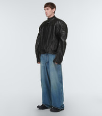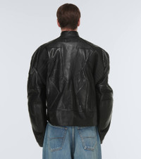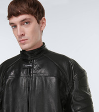 Balenciaga's subversive approach is spotlighted by this biker jacket. Made of calfskin, this fully-lined sporty silhouette has a high neckline, exaggerated shoulder panels, curved seaming, and a logo tab on the placket. Product Details - Lining: 100% polyester - Pocket lining: 100% cotton - Made in Italy - Care instructions: specialist clean - Designer color name: Black - Closure: VELCRO® fastening, zipped front - Contains non-textile parts of animal origin - Pockets: side slit pockets, zipped pockets - Material: 100% leather - Item number: P00798254 Size & Fit - Fits large to size - we recommend trying one size smaller - Designed for an extremely oversized fit - For a closer fit please choose the smallest available size - Oversized shoulders - Heavy material - Stiff material - Falls to the hip - The model in the picture is 185cm-6'1" and wearing a size 2