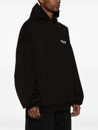 black cotton jersey texture slouchy hood drop shoulder long sleeves embroidered logo at the chest front pouch pocket ribbed cuffs and hem French terry lining When buying this unisex item, keep in mind that it is graded in standard men's sizing. We've partnered with Good On You — an independent agency that rates how brands perform in relation to their impact on the planet, people and animals, with a multi-criteria rating simplified to a five points scale. In order to be awarded our conscious label, larger brands need to score a minimum of four out of five ('Good'), while smaller brands must score at least three out of five ('It's A Start'). This item comes from a brand rated three out of five ('It's A Start') by Good on You at the time it was added on FARFETCH. Please note, this is a brand-level rating and does not guarantee that this product is made with conscious materials. Learn more about what makes a product Conscious on our Conscious Criteria page Size & Fit Model Measurements: Height: 1.81 m Bust/Chest: 80.0 cm Hips: 91.0 cm Waist: 61.0 cm Model wears size 3 Fabric and Care Designer Style ID: 739024TQVS7 Designer Colour: 9034 OP WHIBLACK Composition: Cotton 100% Washing instructions: Machine Wash Made in Portugal
