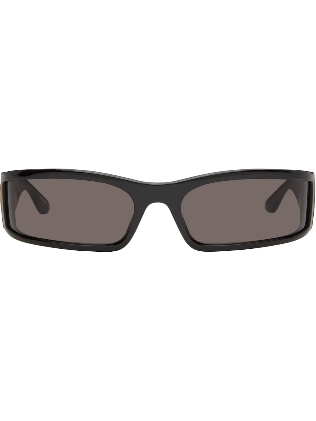 Wraparound bio-based injected nylon-frame sunglasses. · Gray lenses · 100% UVA/UVB protection, category 3 · Integrated nose pads · Logo hardware at temples · Includes case · Size: 73.21 110 Supplier color: Black Nylon. Made in Italy 261342M134001
