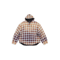 Bleached Shirt in white and red cotton check flannel PRODUCT DETAILS • Cotton check flannel • This item is unisex • Large fit • Attached hood with drawstring • 6 snap front • 2 snap flap pockets at chest • Snap button cuffs • Rounded bottom • Balenciaga inlaid patch at chest • Made in Italy • Dry cleaning • Model is 186 cm / 6'1'' and is wearing a size S Material: 100% cotton