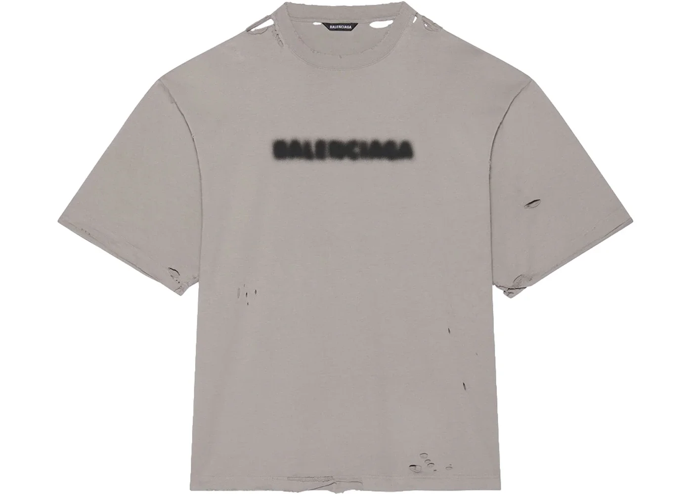 Blurry Wide Fit T-Shirt in grey and black vintage jersey PRODUCT DETAILS • Organic vintage jersey • Wide fit • Mid-thigh length • Elbow sleeve length • Crewneck • Blurry artwork printed at front • Made in Portugal • Cold machine wash • Model is 181 cm / 5'93'' and is wearing a FR size S Details: This product contains 100% organic cotton, grown without chemical fertilizers, pesticides or GMOs. This method of cultivation requires half as much water as conventional cotton on average, improves soil quality, and respects ecosystems and biodiversity. Organic cotton cultivation ensures better remuneration and working conditions for the growers. Our approach: We are committed to the sustainable and ethical management of our operations. The goal of reducing our environmental impact influences our decisions. At all levels and in all locales—whether at offices and stores or along the supply chain—we respect high standards for social and ecological responsibility. Balenciaga is also fur- and exotic leather-free. Material: 100% cotton