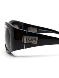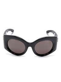 Bold sunglasses Designed with an oversized round frame in a black colourway, these Bold sunglasses from Balenciaga Eyewear are finished with grey tinted lenses and a silver-tone logo plaque at the arms. Highlights - Black - Acetate - Logo plaque at the arm - Tinted lenses - Round frame - Curved arms - Curved tips - These glasses come with a protective case. Made in Italy Composition Acetate 100% SIZE & FIT Measurement Arm Length 4.52 in(11.5 cm) Bridge Width 0.94 in(2.4 cm) Lens Diameter 2.28 in(5.8 cm) Total Width 6.1 in(15.5 cm)