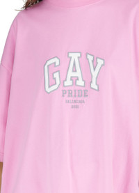 DESCRIPTION - Short-sleeved t-shirt - Straight, wide cut - Round neck - Crew neck - Printed pattern on the front DETAILS AND CARE MATERIAL: 100% Cotton COLOR: pink/white/grey COUNTRY OF MANUFACTURE: Portugal PRODUCT CODE: BAL8B7WAPINDYAA100 The model is 5ft 10in / 1.79m tall and wears a size S.