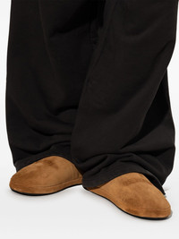 Alaska slippers Highlights - Caramel brown - Flat rubber sole - Faux-shearling lining Made in Italy Composition Sole: Rubber 100% Lining: Fabric 100% Outer: Calf Suede 100%