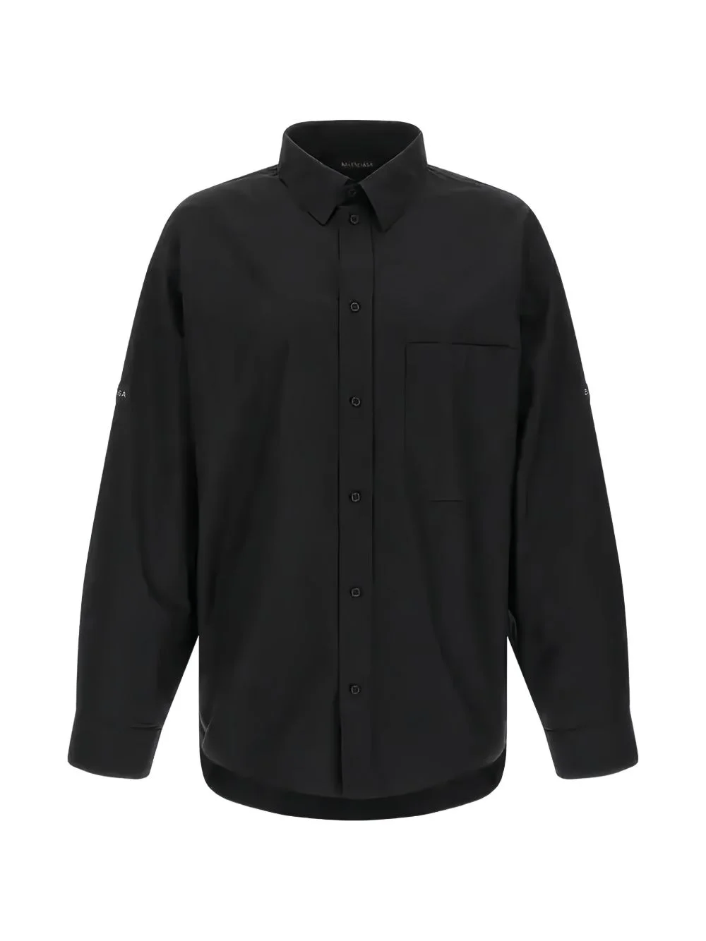 button-fastening cotton shirt jacket Highlights - Black - Point collar - Button fastening - Chest patch pocket - Long sleeves - Buttoned cuffs Imported Composition Cotton 100% Washing instructions Read Manufacturer Guidelines