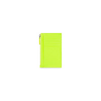 Cash Large Long Coin And Card Holder in neon yellow grained calfskin, black printed logo PRODUCT DETAILS • Dimensions: L5,3 x H2,5 x W0,7 inch • Grained calfskin • Zipped closure • 4 card slots at back • Printed logo • Made in Italy • Wipe with a soft cloth Material: 100% calfskin