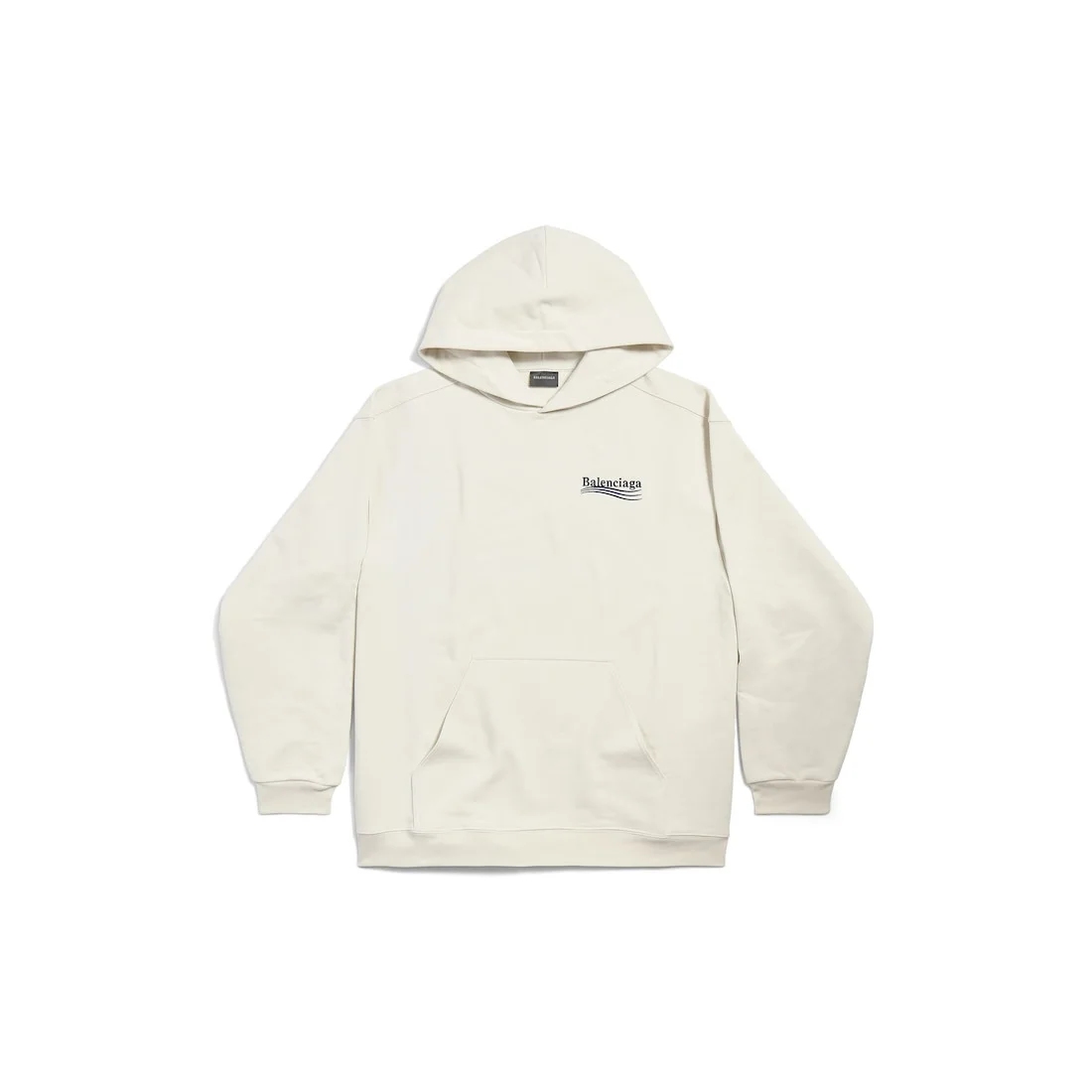 Political Campaign Hoodie Medium Fit in white, black and blue curly fleece PRODUCT DETAILS • Curly fleece • Medium fleece • Hood with drawstring • 1 Kangaroo pocket at front • Political campaign artwork embroidered at chest and back • Made in Portugal • Cold machine wash • Model is 187 cm / 6'2'' and is wearing a FR size S Material: 100% cotton