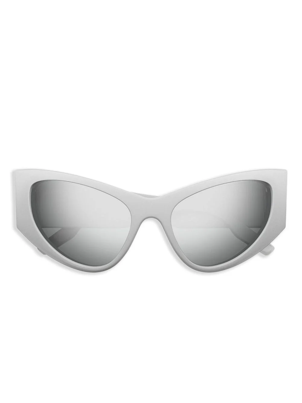 coated cat-eye sunglasses Balenciaga’s sunglasses are a contemporary spin on classic cat-eye styles. They’re crafted from coated acetate with a contrasting logo print at the arms and fitted with UV-protective tinted lenses. Highlights - Light grey - Cat-eye frame - Uv-protective lenses - Grey tinted lenses - Logo print at the arm - Oversize arms - Curved tips Made in Italy Composition Acetate 100% SIZE & FIT Measurement Arm Length 5.9 in(15 cm) Bridge Width 0.74 in(1.9 cm) Lens Diameter 2.2 in(5.6 cm)