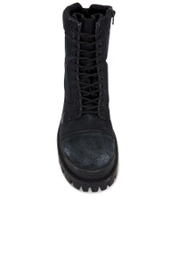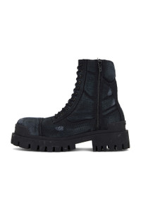 Details - Distressed cotton canvas upper with rubber lug sole - Made in Italy - Lace-up front with side zipper closure - Rounded toe - Balenciaga logo in the front and in the back - Approx 50mm/ 2 inch heel - Approx 195mm/ 7.5 inch shaft - Our Style No. BALF-MZ420 - Manufacturer Style No. 845015-W2H11-1000