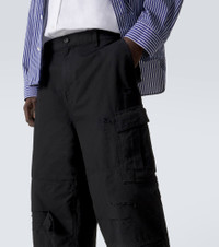 Infuse your wardrobe with utilitarian-inspired styles, like these shorts from Balenciaga. Made from durable cotton, this laid-back style features large cargo pockets and distressed details. Product Details - Material: 100% cotton - Care instructions: machine wash at 30 degrees - Made in Italy - Color: black - Designer color name: Black - Belt loops - Pockets: slant pockets, cargo pockets, back pockets - Closure: zipper fly, button fastening - Distressed details - Item number: P01154384 Size & Fit - Fits large to size - we recommend trying one size smaller - Adjustable at the waist - Non-stretchy fabric - Wide-leg - Height of model is 192cm-75.5" and wears a size M