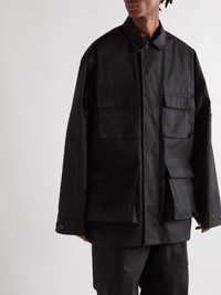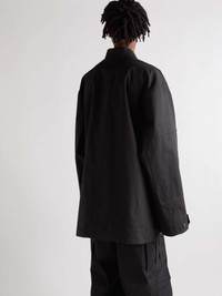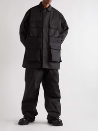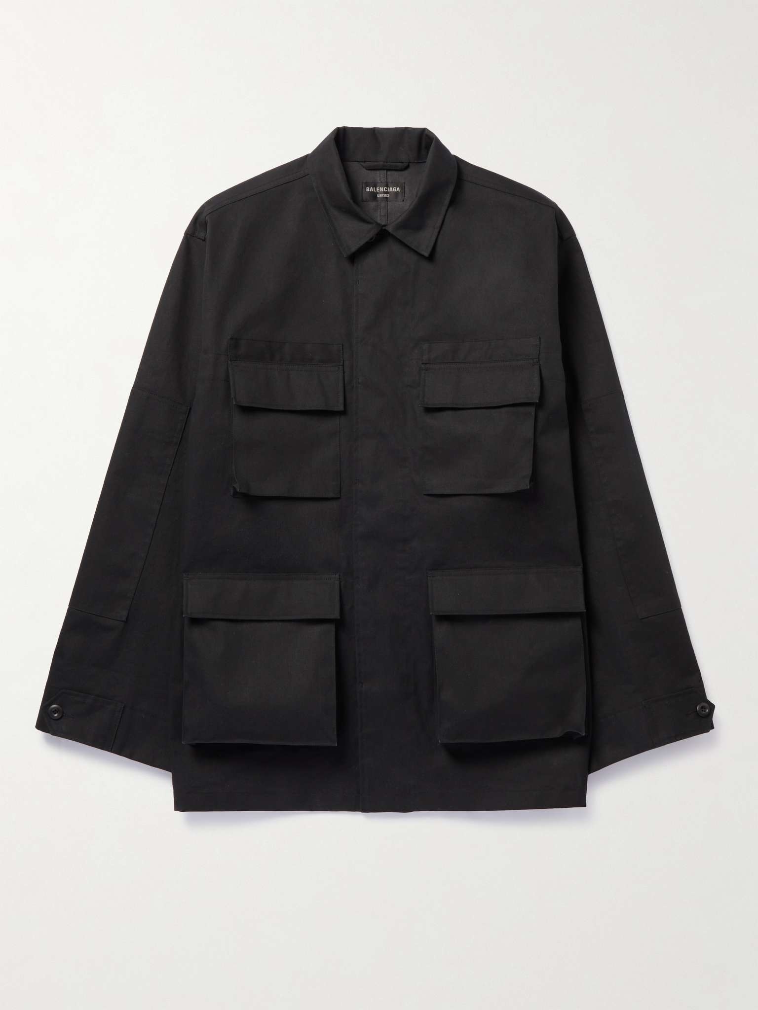 Balenciaga scales up this utilitarian overshirt to maximal proportions. Inspired by traditional workwear, it's cut from weighty cotton-drill and fitted with substantial flap pockets. Fasten yours at the front to keep the collar looking sharp. Size & Fit - Size 1 = 5’7”(170cm), 2 = 5’9”(175cm), 3 = 5’11”(180cm) and 4 = 6’1”(185cm) - Fits true to size, however those who are between sizes should take the smaller size - The model is wearing a size smaller to achieve a closer fit - This jacket is designed for a boxy fit - Weighted, non-stretchy fabric - Model wears a 3 - Model measures: chest 36"/ 92cm, height 6'2"/ 188cm Details & Care - Black cotton-drill - Button fastenings - 100% cotton
