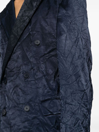 crinkle-effect double-breasted blazer Highlights - Navy blue - Crinkled finish - High-shine detailing - Peak lapels - Double-breasted button fastening - Long sleeves - Buttoned cuffs - Front flap pockets - Internal pocket - Full lining - Straight hem Made in Italy Composition Outer: Viscose 58%, Cupro 42% Lining: Cupro 100% SIZE & FIT Model measurements Height 6 ft 3 in(1.9 m) Bust/Chest 35.03 in(89 cm) Hips 36.61 in(93 cm) Waist 29.13 in(74 cm) FittingInformation Designed for an oversized fit, offering additional room throughout The internal shoulder pads offer a structured shape Made from a midweight non-stretch fabric This piece fits true to size – take your usual size