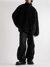 You only have to look at Mick Jagger in that iconic portrait taken by Terry O'Neill to understand the allure of a fluffy jacket. This style from Balenciaga is made from soft faux fur in an oversized bomber silhouette. Team yours with wide-leg jeans and black leather boots. Size & Fit - Size 1 = 5’7”(170cm), 2 = 5’9”(175cm), 3 = 5’11”(180cm) and 4 = 6’1”(185cm) - Fits true to size, however those who are between sizes should take the smaller size - This oversized jacket is designed for a loose fit - Thick, slightly stretchy fabric - Model wears an IT 46 - Model measures: chest 36"/ 92cm, height 6'2"/ 188cm Details & Care - Black faux fur - Zip fastening - 90% acrylic, 10% polyester