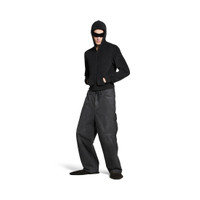 Cropped Skater Pants in black cotton ripstop PRODUCT DETAILS • Cotton ripstop • This item is unisex • Mid-waist • 5 belt loops • Drawstring waist • Covered zip fly • 2 slash pockets at front • 1 watch pocket at front • 1 large zipped pocket on each leg • 1 slash pocket at back right • 1 cargo pocket on right leg • 2 patch pockets at back • Tool loop at back left • Cropped length • Worn-out and dirty effect • Made in Italy Material: 100% cotton